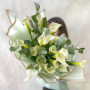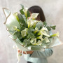 На фото букет из 17 белых калл. В составе: калла 17 шт, эвкалипт 5 шт, крафт-бумага 1 шт, атласная лента 1 шт, . Все цветы свежие и ароматные, букет красиво оформлен и отлично подходит для подарка. Доступна доставка цветов или самовывоз.