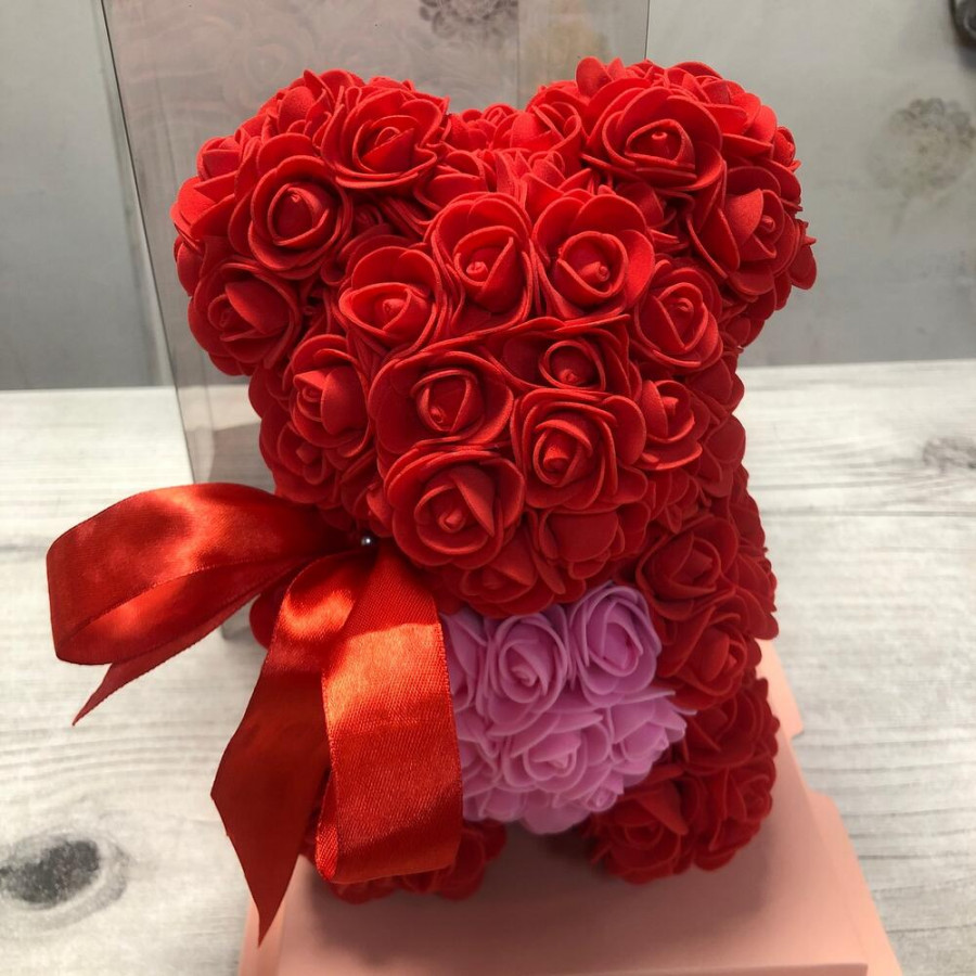 Очаровательный мишка из роз — это не просто подарок, а настоящее вдохновение! Созданный из нежного фоамирана, он принесёт в ваш дом тепло, радость и аромат воспоминаний. Вы можете сбрызнуть розы любимыми духами — и мишка превратится в ароматную игрушку, хранительницу ваших чувств и приятных моментов.